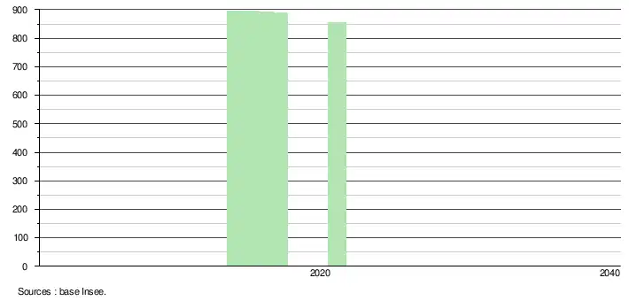 En 2021, la commune comptait 855 habitants[Note 3], en diminution de 4,36 % par rapport à 2015 (Allier : −1,97 %, France hors Mayotte : +1,84 %).