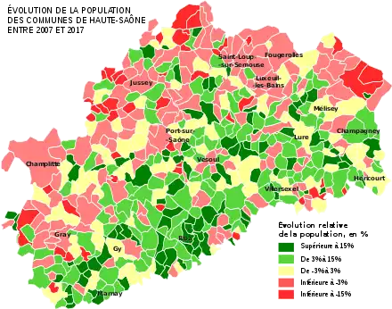 Le département de la Haute-Saône est composé de 539 communes, 17 cantons et 2 arrondissements. De plus, il est constitué de 31 intercommunalités dont une communauté d'agglomération (communauté d'agglomération de Vesoul).