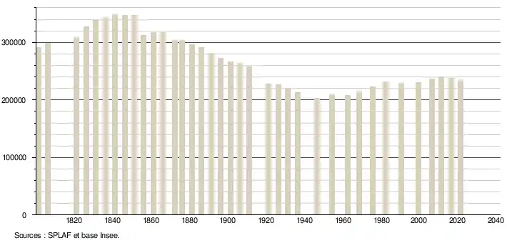 - Population municipale légale en vigueur au 1er janvier 2024, millésimée 2021, définie dans les limites territoriales en vigueur au 1er janvier 2023, date de référence statistique : 1er janvier 2021.