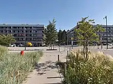 Le plan de masse du quartier présente toutefois quelques originalités, notamment des barres d'immeubles de quatre étages qui effectuent un retour d'équerre, pour former des rectangles ouverts avec cours intérieurs. Il s'agit d'éviter la continuité de longues barres qui formeraient des « murailles » au sein du quartier, comme on peut le voir ailleurs en France. Dans une lettre de l'architecte au maire de la ville, il évoque un système de « grecques » qui « évite les longs ensembles dont la froide théorie chasse toute chaleur humaine »[3].