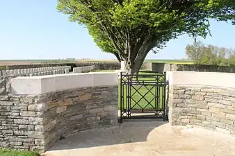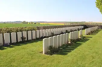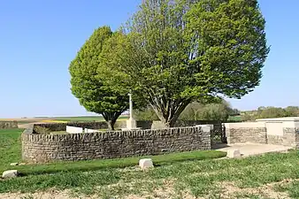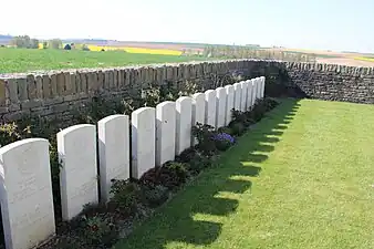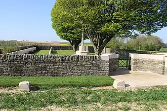 Ici sont inhumées 153 victimes de la guerre 1914-18 dont 71 sont non identifiées. Presque tous tombèrent le 1er juillet ou le 13 novembre 1916.