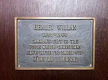 Healey Willan Park est un parc public local nommé en son honneur, situé immédiatement à l'est de l'église Sainte-Marie-Madeleine, sur le site de l'ancien couvent des Sœurs de l'Église, qui avait déménagé d'abord à Oakville et plus tard à Burlington . Le petit parc rectangulaire est séparé des rues par une clôture métallique basse, qui assure la sécurité des enfants utilisant l'aire de jeux et la pataugeoire.