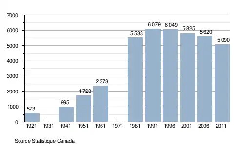 Évolution de la population totale, 1921-2011[2],[5],[16]
