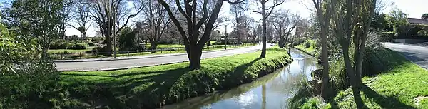 Il est alimenté par les chutes d’eau situées près de « Templetons Road » et reçoit aussi des flux humides de la partie ouest de « Pound Road ». Il méandre autour de la base de la chaîne de Port Hills allant de l’ouest vers le sud-est.