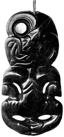 Porté autour du cou, il est souvent en néphrite (pounamu en maori) ou en os de baleine avec une corde en fibres végétales et un fermoir en os de baleine.