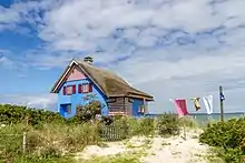 Maison à Graswarder, un sanctuaire d'oiseaux, sur la côte de Heiligenhafen. Août 2017.
