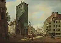 Par la suite il peint des paysages et des vues de villes, qui sont exécutés avec une grande précision[1]. Son Das neue München mit den Bauten König Ludwigs I. (1839), un point de vue dans les huiles de Max-Joseph-Platz, entouré de 14 petites photos de nouveaux bâtiments à Munich, montés dans un cadre, est dans la collection du Munich Stadtmuseum[2]. Un ensemble d'aquarelles dans un format similaire est dans le Metropolitan Museum à New York[3].