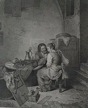 - Pieter Cornelisz van Slingelandt, Jeune garçon à la souris et à la souricière, gravure pour la Galerie des peintres flamands, hollandais et allemands de Jean-Baptiste-Pierre Lebrun, Paris et Amsterdam, 3 volumes, 1792-1796[15].