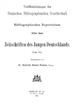 - Zeitschriften des Jungen Deutschlands. 2 Bde. Behr, Berlin 1905–1909. (= Veröffentlichungen der Deutschen Bibliographischen Gesellschaft. Bd. 4–5. Bibliographisches Repertorium. Bd. 3–4.)