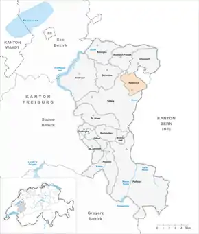 Limitrophe de Tavel et Ueberstorf et de Schwarzenburg dans le canton de Berne[réf. souhaitée], elle comprend en plus du village de Heitenried les hameaux de Scheuergraben, Schönfels, Selgiswil, Unterwinterlingen et Wiler vor Holz[3].
