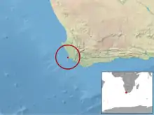 Cette espèce est endémique du Cap occidental en Afrique du Sud[1]. Elle se rencontre de 240 à 1 060 m sur les flancs de la montagne de la Table.