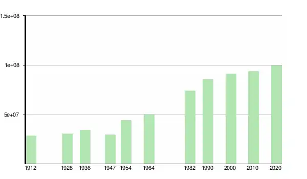 | 1964[7] | 50 325 511 | +13.8% |