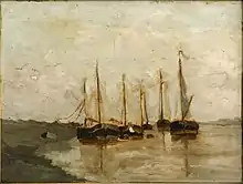 Bateaux de pêche ancrés dans la rade, par Henri Arden, collection particulière.