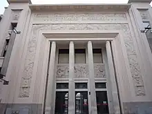 Bas reliefs du porche de l'entrée principale du Lycée technologique régional Dhuoda de Nîmes par Henri Calvet