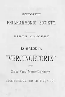 - Vercingétorix, drame lyrique en 3 actes (1880, 1886), livret en anglais de Joshua Lake d’après le texte de M. Maniel. Seul le livret a été publié en 1881 (Melbourne, W. H. Williams) puis pour la reprise à Sydney en 1886 (après remaniements).