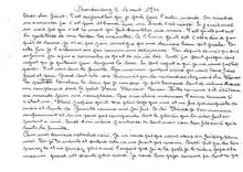 Bien cher frérot : c'est aujourd'hui que je pars pour l'autre monde. On vient de m'annoncer ça, c'est pour 11 heures. Pour un lundi, c'est réussi. Si j'écris mal, ne crois pas que c'est la mort qui fait trembler ma main. C'est qu'ils ont eu la gentillesse de me laisser les menottes. À l'heure qu'il est, c'est-à-dire à peu près 10 heures, je n'ai pas peur, malgré que ma dernière heure soit proche. Car cette fin, je l'entrevois un peu comme une délivrance. Car depuis dix mois que je suis enfermé, j'ai appris à connaître ce qu'est la vie ici-bas. Aussi, ça sera presque sans regret que je quitterai pour toujours la terre. Le seul regret à qui je ne veux pas trop penser. C'est vous tous la famille. Papa, maman surtout, ainsi que vous tous frères et sœurs.