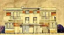Avec la Villa Thonnart en 1931, son style moderniste est encore plus radical et dépouillé : volumes cubistes, façades lisses sans débords de toiture et larges percements.