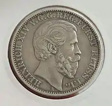 Portrait d'Henri XIV sur un Vereinsthaler de 1868.