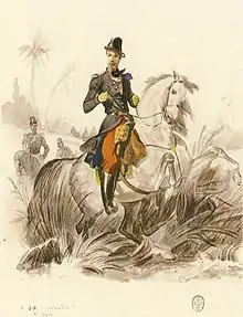 Aumale à cheval, vers 1840. Aquarelle de Philippoteaux.