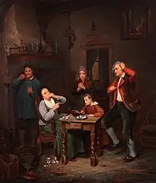 - Un Brocanteur présentant à vendre des montres à deux paysans. Anvers, 1828.