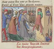 Les massacres de 1418. Enluminure ornant le manuscrit de Martial d'Auvergne, Les Vigiles de Charles VII, vers 1484, BNF.
