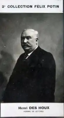 Malade d'une broncho-pneumonie[28], Henri des Houx meurt le à son domicile du no 104 de la rue de Richelieu. Le surlendemain, il est inhumé au cimetière du Père-Lachaise (division 62)[29], en présence de nombreuses personnalités et après des prières prononcées par l'abbé Georges Volet, curé vieux-catholique de l'église cultuelle gallicane Saint-Denis[30] située au no 96 du boulevard Auguste-Blanqui (aujourd'hui cathédrale Saint-Irénée de l'Église catholique orthodoxe de France).