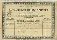 - sur scriponet certificat de propriété d'une action de la SA Henry Bauchet datant de 1906