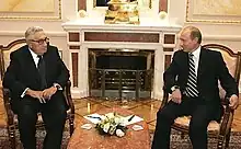 Kissinger conserve une influence dans les relations américano-russes et a notamment fait la connaissance de Vladimir Poutine en 1990. En 2016, la presse rapporte qu'il pourrait être appelé par la Maison Blanche à jouer un rôle de médiateur dans l'affaire de l'influence qu'aurait eue la Russie sur les élections présidentielles américaines dont Donald Trump est sorti vainqueur[53].