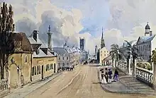 Rue Notre Dame, Montréal, aquarelle, gouache et crayon sur papier, 20,3 × 31,1 cm