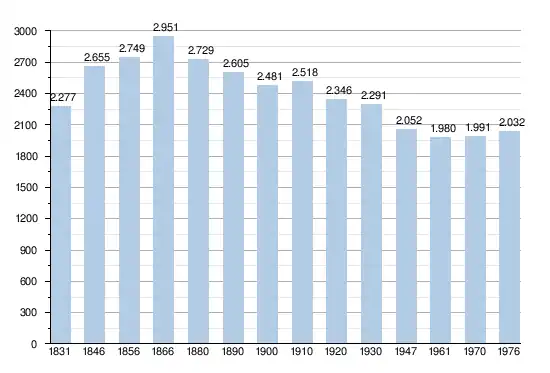- Sources : INS, Rem. : 1831 jusqu'en 1970 = recensements, 1976 = nombre d'habitants au 31 décembre.