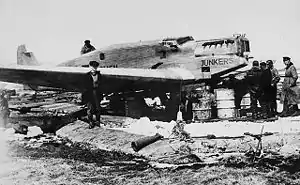 Après la traversée de l'Atlantique d'ouest en est par Charles Lindbergh en , l'idée de la traversée en sens inverse, ce qui est plus difficile en raison des vents dominants, devient de plus en plus populaire. En 1927 Ehrenfried Günther von Hünefeld fait l'acquisition de deux avions Junkers W 33 de la société Junkers de Dessau, qu'il nomme d'après les deux fleurons de la Norddeutscher Lloyd, le SS Bremen et le SS Europa. Ses plans sont soutenus par Hugo Junkers. Les premières tentative en 1927 échouent compte tenu de mauvaises conditions météorologiques[2]. Compte tenu des nombreuses tentatives tragiques de traversée de l'atlantique en avion de la perte de l'Europa et du vol historique de Lindbergh, la compagnie Junker's voit tout autre tentative d'un autre œil mais le professeur Junkers lui-même y reste favorable. Ainsi, presque en secret, Hünefeld et Köhl s'envolent pour Baldonnel en Irlande [3]où ils rencontrent James Fitzmaurice (en), commandant de l'aérodrome de Baldonnel. Le , tous trois quittent Baldonnel à bord du Bremen (en) et traversent l'océan Atlantique, atterrissant sur l'île Greenly sur la côte sud du Labrador au Canada. Bien qu'ils aient manqué leur destination initiale, New York, ils sont les premiers à traverser l'Atlantique d'Europe vers l'Amérique.