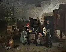 Van den Anker a accompagné Edmond Lebel en Bretagne en 1859, laissant d’intéressantes études d’intérieurs bretons, avec personnages en costume régional.