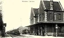 En 1857 le chemin de fer arrive avec la mise en service de la gare d'Hermes - Berthecourt sur la ligne de Creil à Beauvais, construite de 1855 à 1857 pour le compte de la Compagnie des chemins de fer du Nord. Elle comportait deux voies jusqu'en 1947. Aujourd'hui, les croisements de TER se font en gares de Hermes - Berthecourt et de Mouy - Bury. Cette ligne a été empruntée par la célèbre Micheline, un autorail sur pneus, de 1936 à l'entrée en guerre. La gare devient un carrefour ferroviaire en 1879, lors de l'ouverture de la ligne de chemin de fer secondaire à voie métrique du réseau des chemins de fer départementaux de l'Oise de la ligne d'Hermes à Beaumont (ou HB), et qui acheminait jusqu'en 1959 marchandises (essentiellement des briques fabriquées à Noailles et des betteraves) et voyageurs sur les 32 km de ligne séparant Hermes de Beaumont. L'écartement spécifique des rails de cette ligne obligeait à un transbordement en gare de Hermes pour acheminer les marchandises[24],[25],[26].