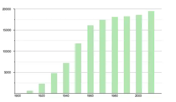 | 1960 | 16 115 | ▲ +36,27 % | |