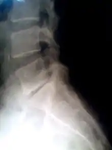 - (en) Cet article est partiellement ou en totalité issu de l’article de Wikipédia en anglais intitulé « Spinal disc herniation » (voir la liste des auteurs).