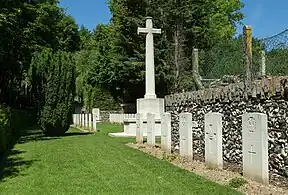 Ce cimetière a un plan rectangulaire de 25 m sur 7 et est clos par un muret de silex sur un socle en moellons sur trois côtés et d'une haie d'arbustes.