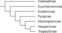 Les études phylogénétiques les plus récentes menées par Warren et al. reconnaissent l'existence de 7 sous-familles au sein des Hesperiidae[4],[5] :