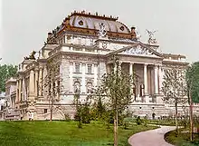 La construction du nouveau théâtre de Wiesbaden est initiée et promue comme le nouveau théâtre de la cour royale par l'empereur Guillaume II. Après un concours d'architecture limité, auquel sont invités Manfred Semper, fils du célèbre Gottfried Semper, et le professeur Georg Frentzen d'Aix-la-Chapelle, les architectes viennois de théâtre Ferdinand Fellner le Jeune et Hermann Helmer, alors connus dans toute l'Europe, sont engagés pour construire le bâtiment en 1892/1894 pour 1,8 million de marks dans le style néo-baroque. Les modèles pour le nouveau bâtiment comprennent des théâtres à Prague, Vienne et Zurich. Le , après une période de construction de seulement 22 mois, le nouveau bâtiment est inauguré solennellement en présence de l'empereur. À la demande de l'empereur, un foyer est ajouté en 1902 à l'est de l'ancien théâtre en miroir pour 600 000 marks, ce qui dépasse même la splendeur de l'auditorium. Cette première extension est complétée par une scène de répétition, la salle des peintres et divers ateliers sur le côté sud des colonnades. Ces zones sont construites par le maître d'œuvre de Wiesbaden de l'époque, Felix Genzmer.
