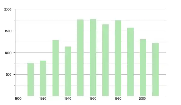 | 1970 | 1 655 | ▼ −6,44 % | |