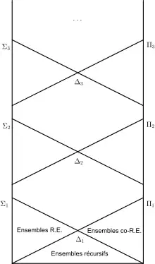 Ceci définit la hiérarchie, la classe des ensembles Σ0 étant définie.