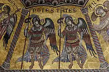 Les Puissances, quatrième chœur de la hiérarchie céleste, travaillent essentiellement à maintenir l'ordre divin et lutter contre les démons[15],[14].