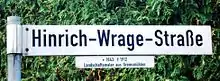- La rue Hinrich-Wrage-Strasse à Malente porte son nom.