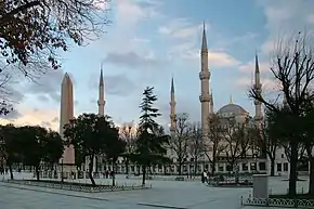 - l'obélisque de Théodose, érigé d'abord par le pharaon Thoutmôsis III au sud du VIIe pylône du grand temple de Karnak en Égypte, transporté à Alexandrie sous Constance II (empereur de 337 à 361), puis enfin à Constantinople sous le règne de Théodose Ier (empereur de 379 à 395) où il fut réérigé en 390 dans l'hippodrome[5].