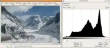 En imagerie numérique, l’histogramme est la représentation graphique de la distribution des pixels d'une l'image, ou d'une partie d'image, selon leur intensité. La forme la plus classique répartit la plage d'intensité sur l'axe horizontal, le noir ou les tons sombres étant situés à l'origine du graphique. En tenant compte du nombre de pixels, l'histogramme peut être représenté en termes de proportions ou de probabilités.