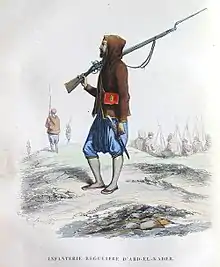 () « Le 26, le feu brûlait encore du côté de la Maison-Carrée ; il parait que le farouche Ben-Salem n'est pas loin de là. La fumée qui s'élève des feux de la plaine dérobe la vue de l'Atlas. Les Arabes ont attaqué la Maison-Carrée ; mais ils ont été repoussés par les Couloughlis et les Aribs, faibles débris de tribus indigènes chargées de la défense de ce point »[66].