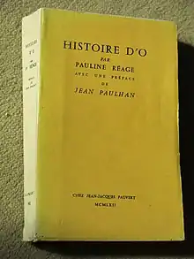 Histoire d'O est un roman français signé par Pauline Réage (pseudonyme de Dominique Aury, née Anne Desclos) publié en 1954 aux Éditions Pauvert et ayant reçu le prix des Deux Magots l'année suivante.