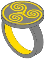 Une version de l’anneau de Roissy avec un triskèle décrit dans le livre.