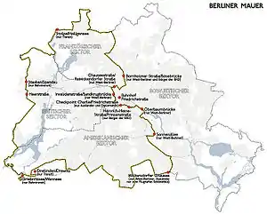 Lassées de l'exode ininterrompu des Allemands vers la RFA via les secteurs d'occupation ouest, les autorités est-allemandes, avec l'aval des Soviétiques, arrêtèrent la décision de séparer physiquement « Berlin-Est » et « Berlin-Ouest » par une muraille surveillée par un réseau de miradors. La construction du mur commença dans la nuit du 12 au .