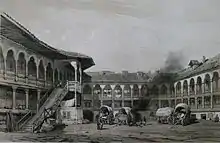 La libéralisation des droits commerciaux ottomans et russes au profit des principautés et la reprise par la Valachie du port danubien de Brăila (pouvant recevoir les navires maritimes) assurent une renaissance économique sous le règne du Prince Alexandre II Ghica[51], qui augmente le nombre de rues pavées et construit un nouveau palais princier (plus tard remplacé par l'actuel palais Royal)[52]. La ville est affectée par un léger tremblement de terre en , et une crue majeure en [53].
