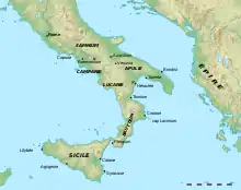 Au cours de ses campagnes d'Italie, Pyrrhus reçoit des envoyés des cités siciliennes d'Agrigente, Syracuse et Leontini qui demandent de l'aide pour évincer la puissance carthaginoise[142] devenant prépondérante sur l'île[141]. Pyrrhus accepte et fait renforcer les cités siciliennes d'une infanterie de 20 000 hommes, d'une cavalerie de 3 000 hommes, de vingt éléphants de guerre ainsi que de 200 navires.